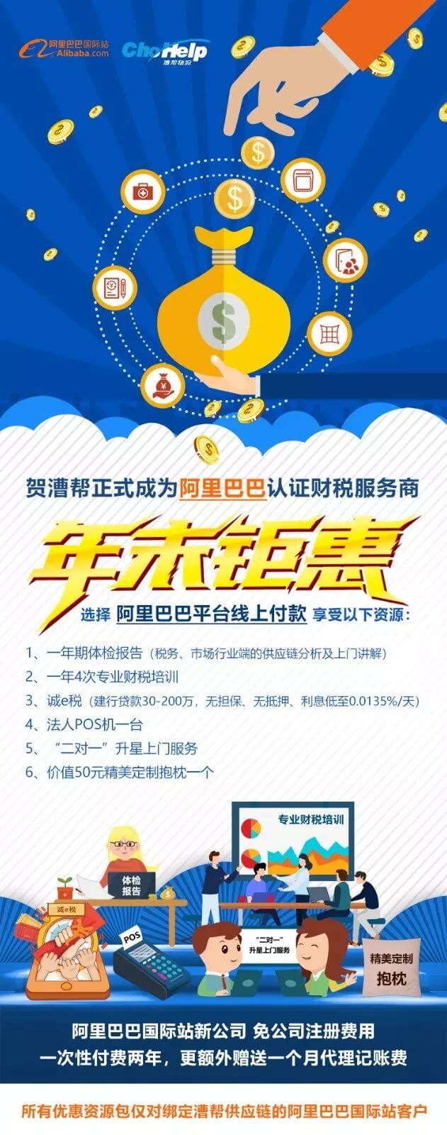 另外,阿里巴巴国际站新公司,免公司注册费用,一次性付款两年,更有额外赠送一个月代理记账费。